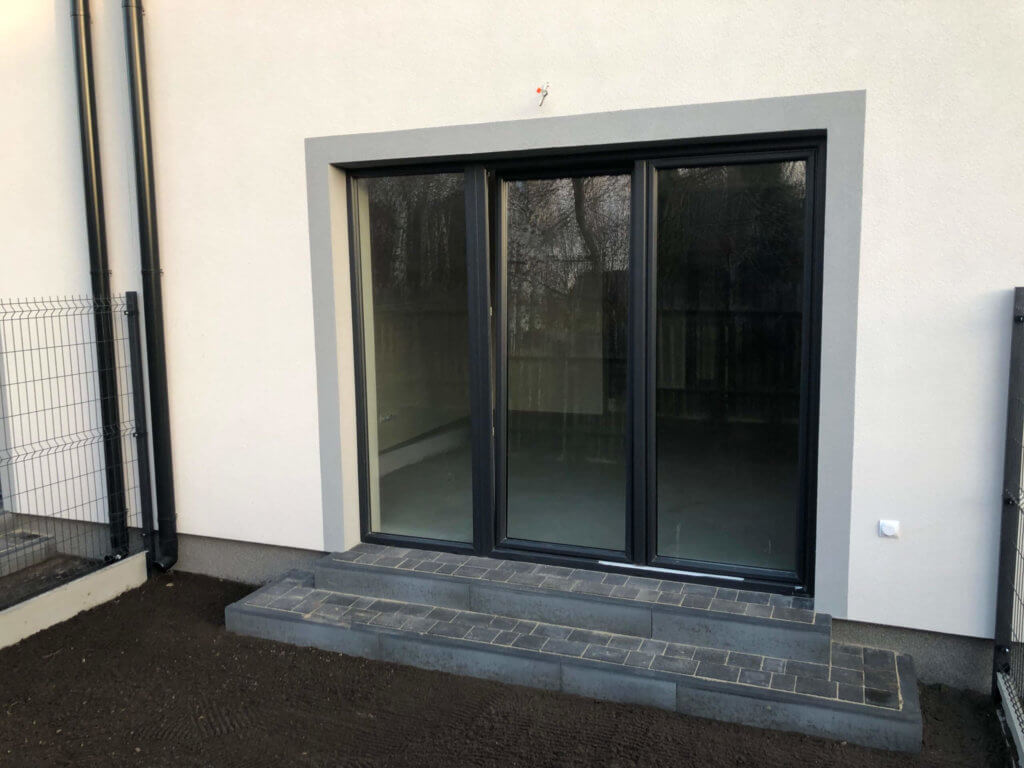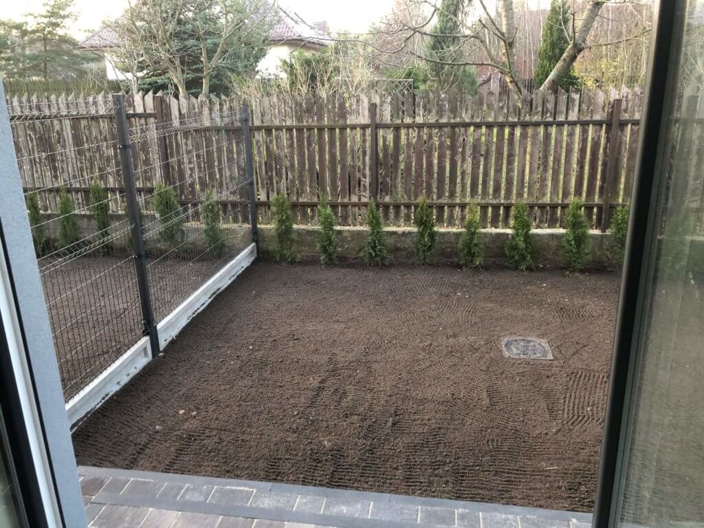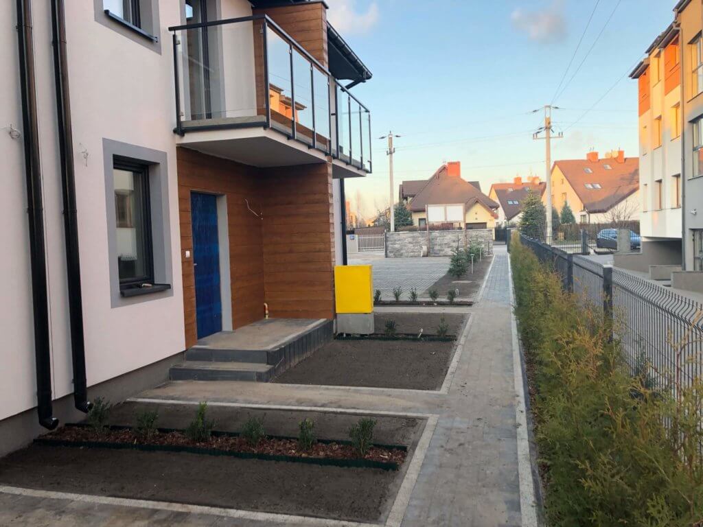 Na parterze duży pokój dzienny z wyjściem na nieduży ogródek. Wiatrołap z miejscem na szafę. Kuchnia zamknięta z oknem.